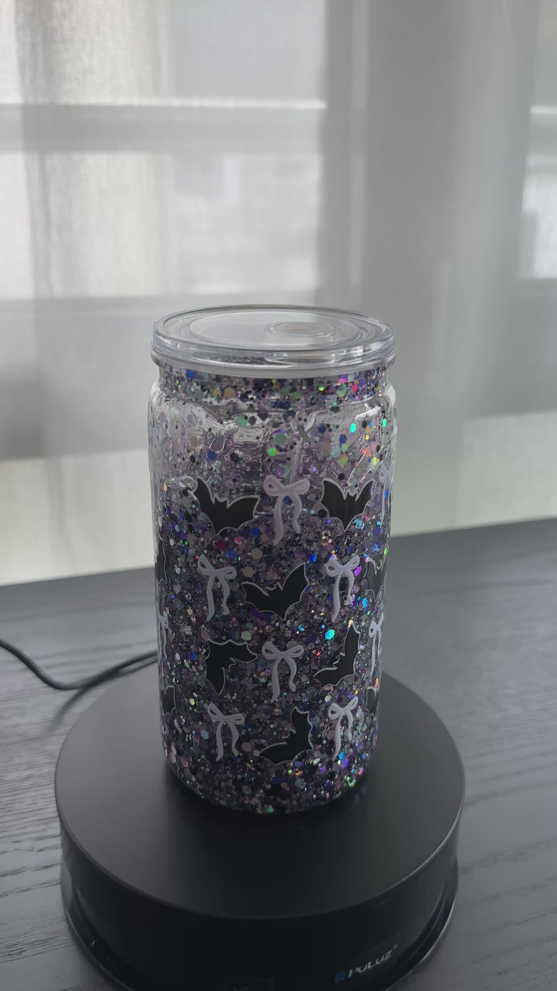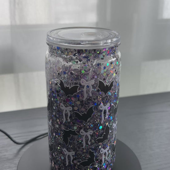 16oz acrylic tumbler fast flow effect snow globe with purple, black and silver glitter