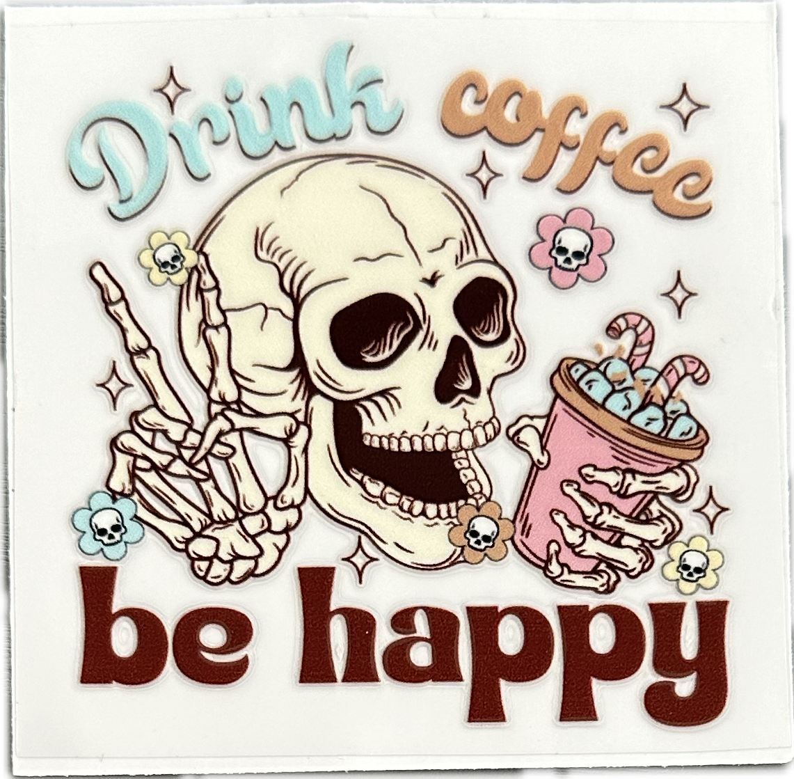 Wrap "drink coffee be happy" skull
